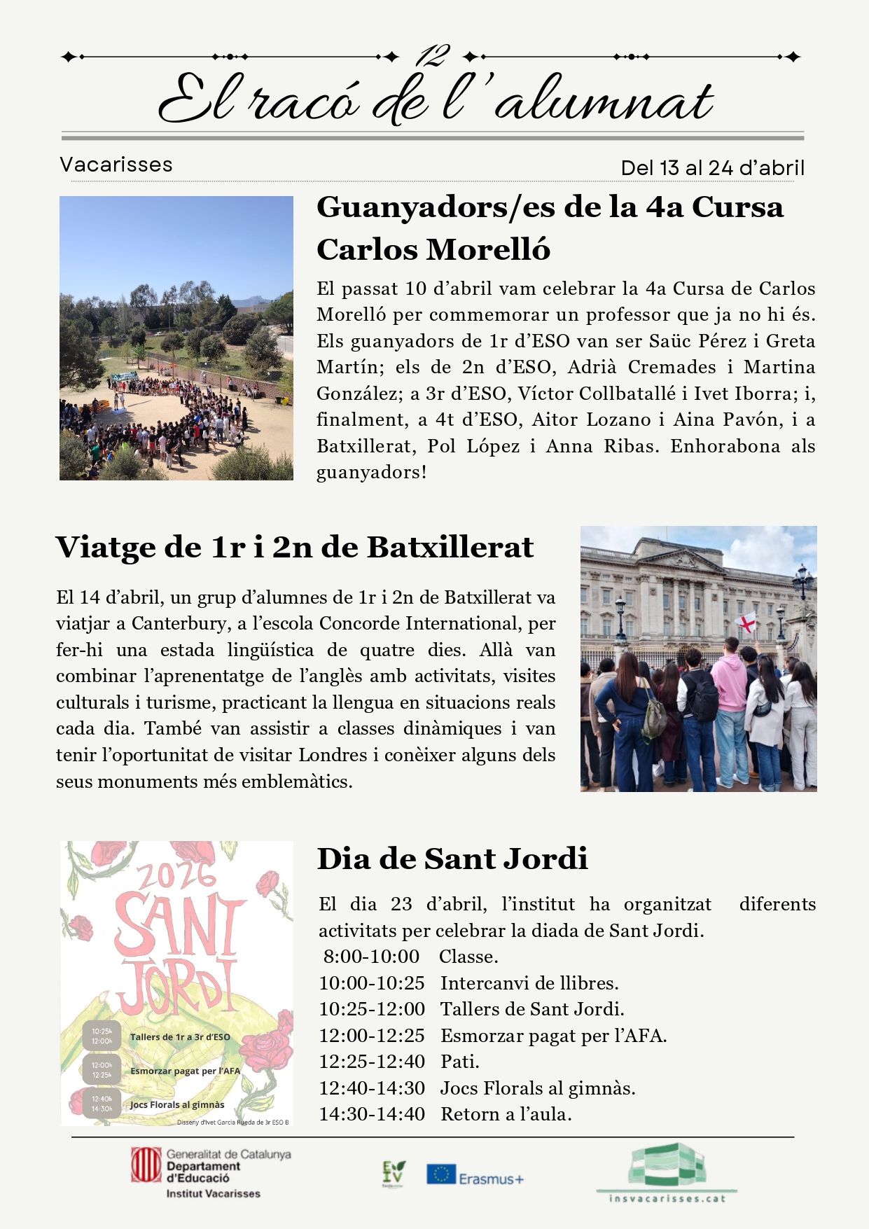Us presentem la dotzena edició del Racó de l’alumnat.