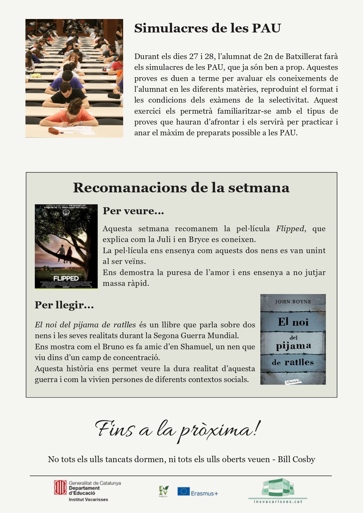 Aquest espai té com a objectiu mantenir-vos informats de les activitats i novetats del centre. El podreu consultar tant al vostre correu electrònic com a aquí, a la web de l’institut.