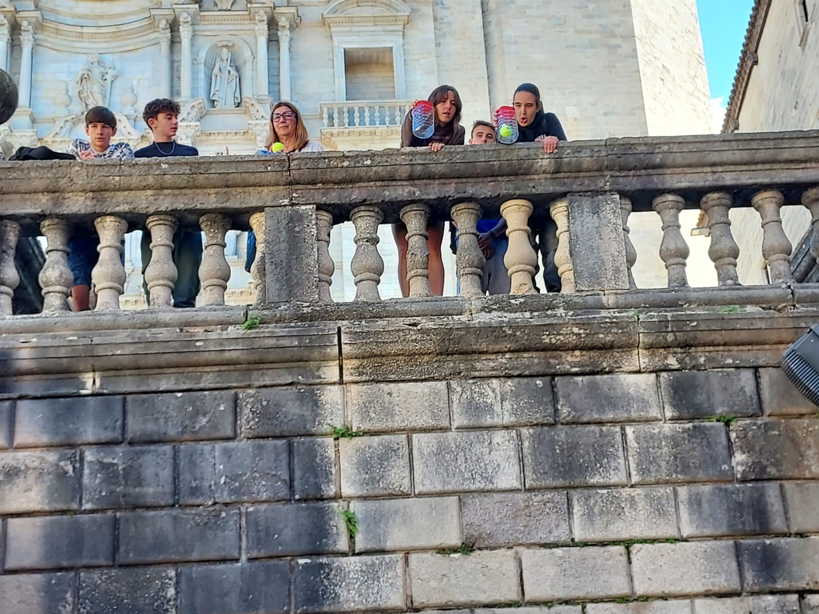Després del taller i d’uns petits moments d’esbarjo al barri vell de Girona, ens hem dirigit a la Catedral on s’ha proposat a l’alumat descobrir QUI TENIA RAÓ ARISTÒTIL O GALILEO, reproduint els experiments fets per Galileo a la Torre de Pisa. L’alumnat ha estat el protagonista en tot moment i ha gaudit molt de l’experiència, tal com es mostra en el recull d’imatges.