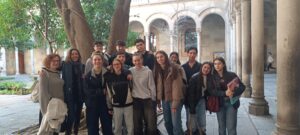 Maria Mercè Marçal, va estudiar a la Universitat de Barcelona, la Meritxell ens va fer de guia per les aules, passadissos i diferents espais per on la nostra protagonista s’havia mogut. Trepitjar el mateix terra, contemplar les aules, els patis, totes i tots els joves que ens vàrem anar trobant dinant, xerrant, descansant, rient (fins i tot una exalumna molt estimada del nostre institut que ara hi estudia!) ens convidava a veure-la allà mateix, en altres èpoques. Èpoques de molta reivindicació i lluita, de molt compromís social, de responsabilitat envers el futur que volien tot aquell jovent.
