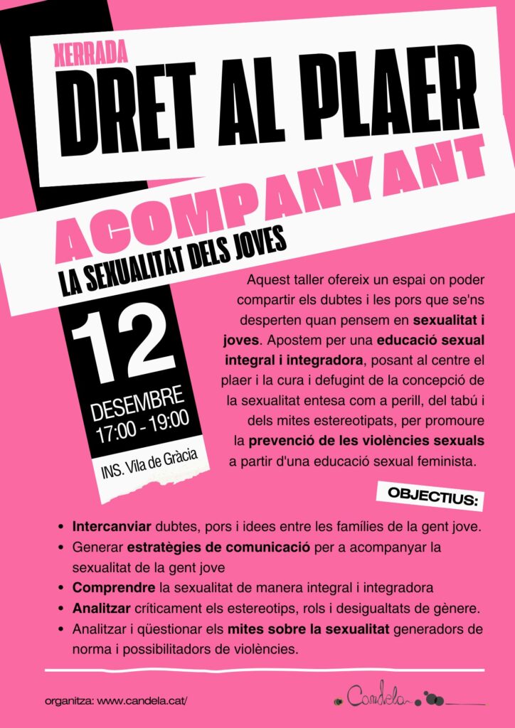 Us esperem el pròxim 12 de desembre a les 17h per aprofundir en l’acompanyament de la sexualitat en els vostres fills/es.