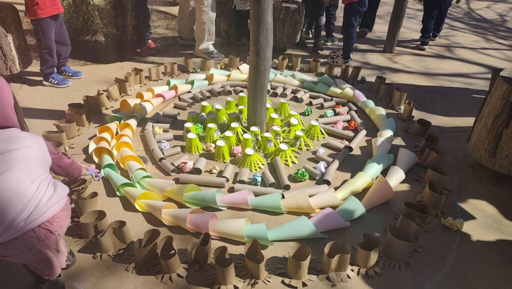 El que volíem els alumnes de 4t d’ESO era explicar als nens i nenes la cooperació, fent una acció artivista, d’una manera que ho puguin aprendre, anant a posar peces intentant fer un mandala amb els ulls tancats i ajudant-se entre ells i elles.