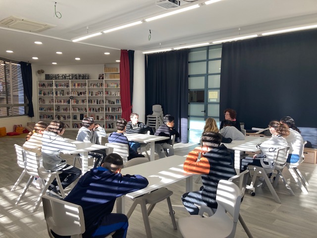 Amb l’inici de l’Hora de lectura, l’alumnat de 1r d’ESO es reuneix amb la Carme, bibliotecària, per pensar possibles lectures per a donar inici a un Club de lectura.