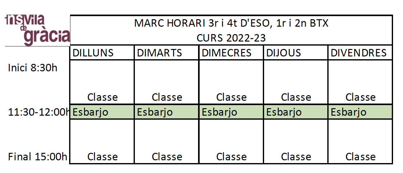 2n BTX: Marc horari classes. Assignació tutoria (llistat anonimat). Reunió famílies: dimarts dia 13 de setembre a les 18 hores.