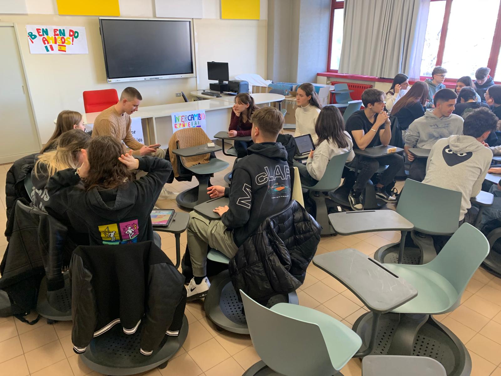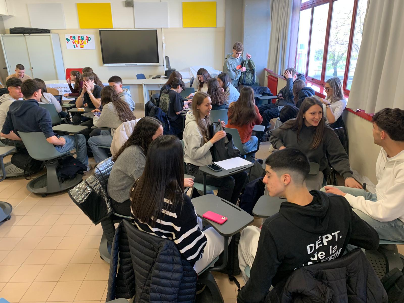 Avui estem passant el matí a l’institut amb els companys i companyes italians que ens estan acollint. Estem treballant en grup per conèixer-nos i conèixer els nostres països i les diferents realitats que vivim en els nostres centres educatius. Està sent molt interessant.