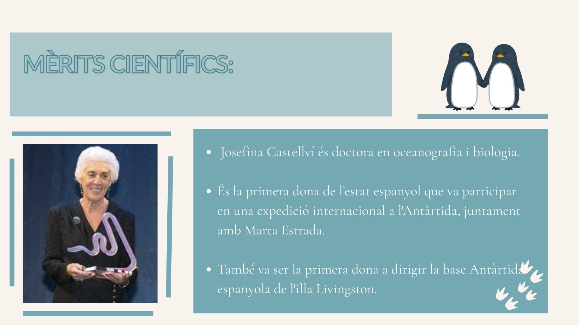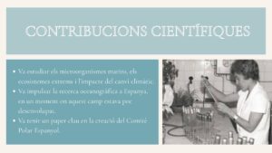 Va ser la primera dona de l’Estat espanyol a participar en una expedició científica internacional a l’Antàrtida, obrint camí en un àmbit que fins aleshores havia estat reservat gairebé exclusivament als homes. La seva determinació i passió per la ciència van contribuir decisivament a trencar barreres i a fer visibles les dones en el món de la recerca científica.