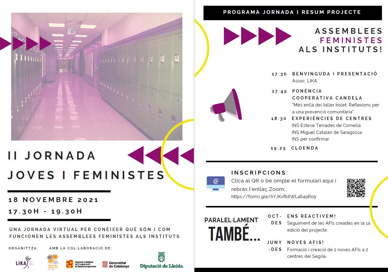 Ens han convidat a participar a la II Jornada d’Assemblees Feministes als Instituts de la demarcació de Lleida, on hi ha una ponència de #Candela i taula rodona amb 3 centres d’#ESO d’arreu de l’estat espanyol que presentaran les seves experiències. #INSACumella