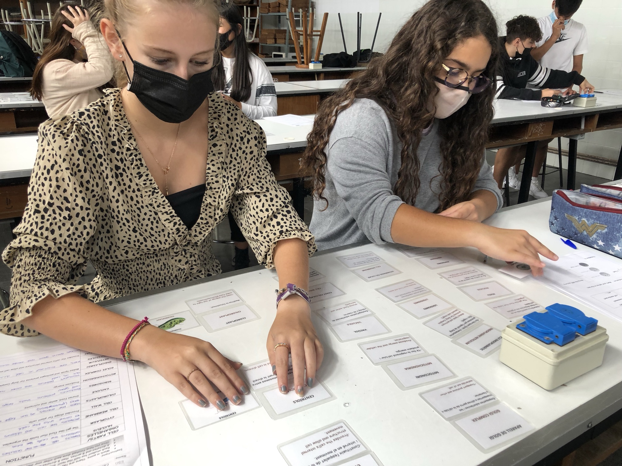 Mutual dictation, playing cards (matching each organelle with its function) and speaking task, helping themselves with a language scaffolding framework.