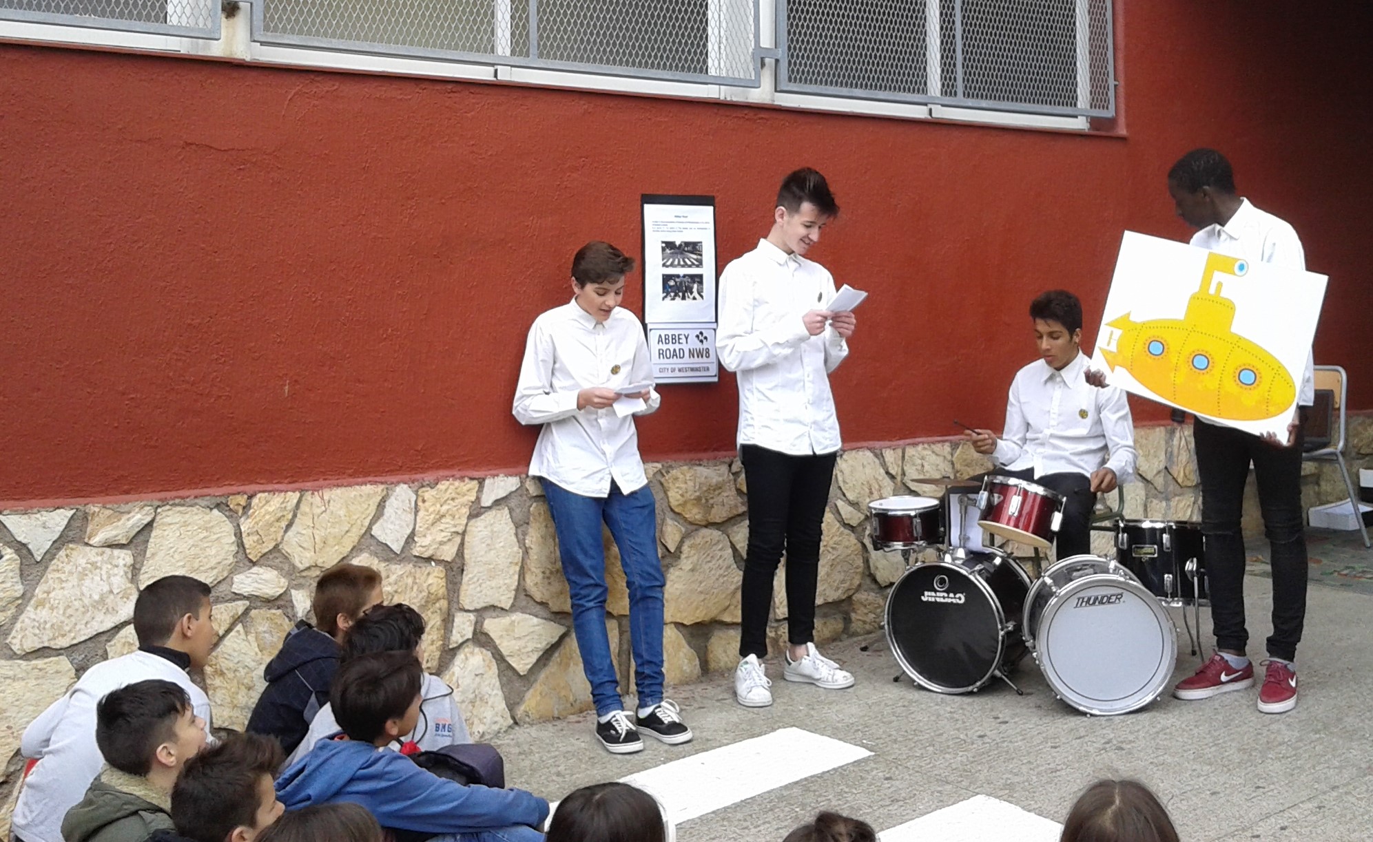 Al llarg de la primera franja del matí els alumnes del centre han preparat diverses activitats per als alumnes d’algunes escoles de primària (conta-contes, escenificacions teatrals, números musicals, iniciació al bàdminton en anglès…), totes elles en un context “british”.