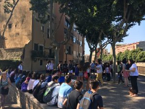 Prèviament, a classe, els alumnes havien realitzat un treball de recerca dels edificis medievals de Girona, els havien geolocalitzat a un google maps dissenyat per ells i n’havien fet una breu descripció.