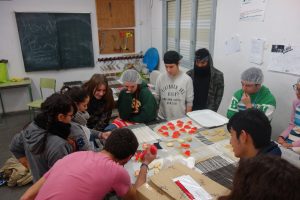 Els alumnes de l’Aula Oberta de l’Institut de Sant Feliu, acompanyats per la nostra excompanya Glòria Calvo, han vingut a conèixer el funcionament de la cooperativa Handwork i a participar activament de la producció de galetes.