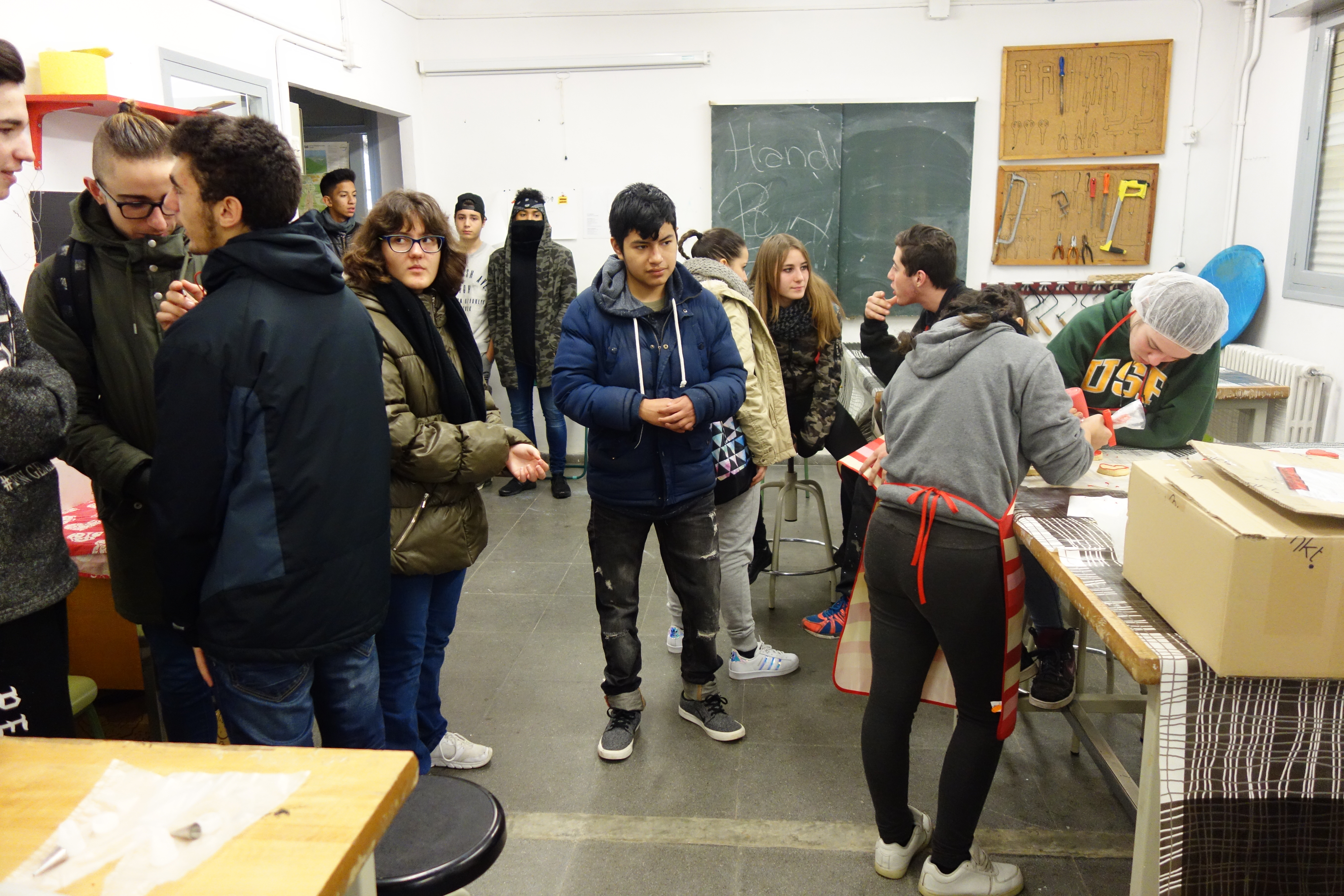 Han quedat sorpresos i han pres nota de la transformació de l’espai que s’està duent a terme a l’Aula Oberta, del seu funcionament com a cooperativa i també han conegut els alumnes de PIM, els seus projectes i dels espais d’aules que tenim. A canvi, ens han obsequiat amb un ram d’aromàtiques conreades al seu hort i ens han convidat a conèixer el seu Institut i el seu poble.