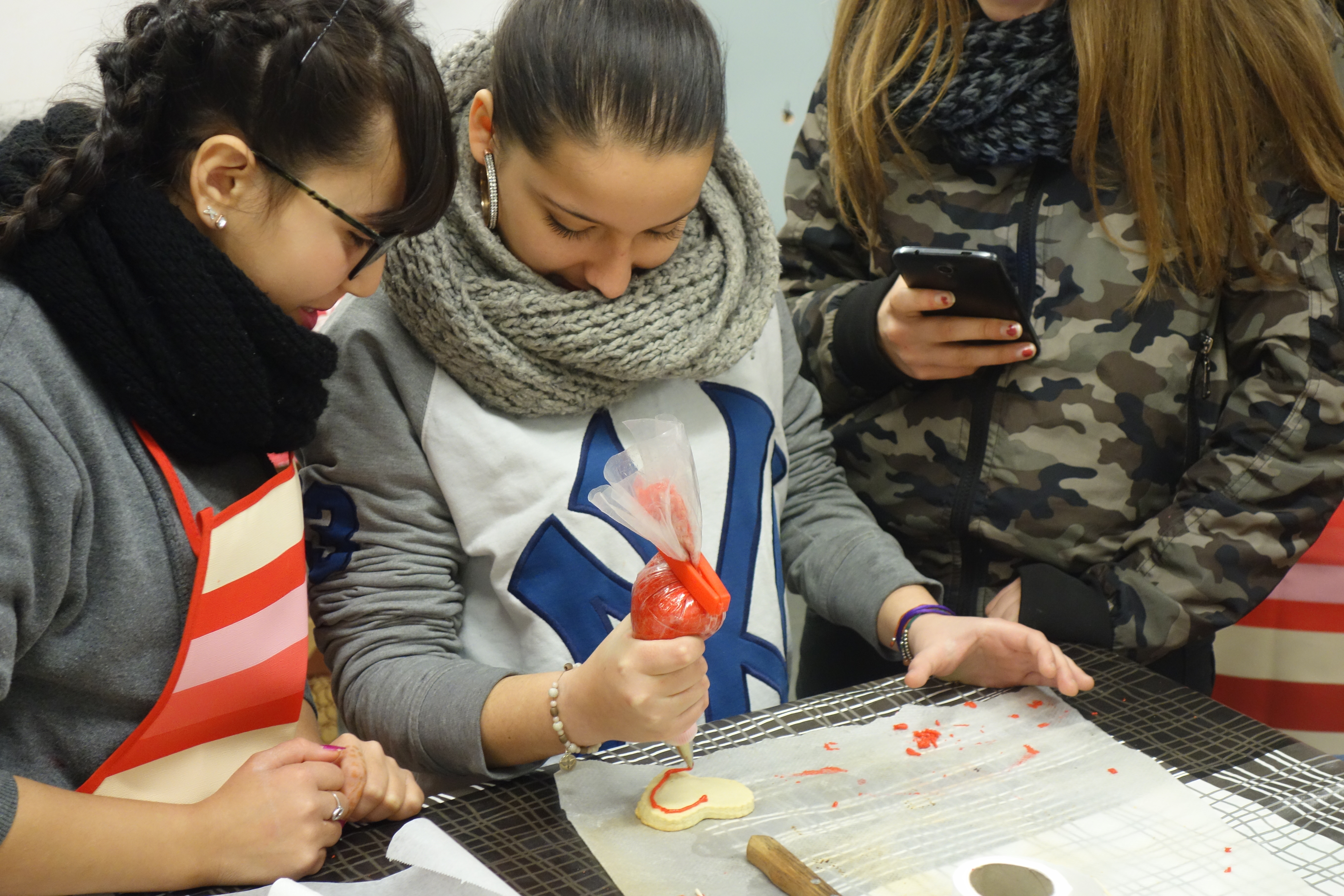 Els alumnes de l’Aula Oberta de l’Institut de Sant Feliu, acompanyats per la nostra excompanya Glòria Calvo, han vingut a conèixer el funcionament de la cooperativa Handwork i a participar activament de la producció de galetes.