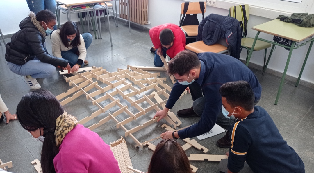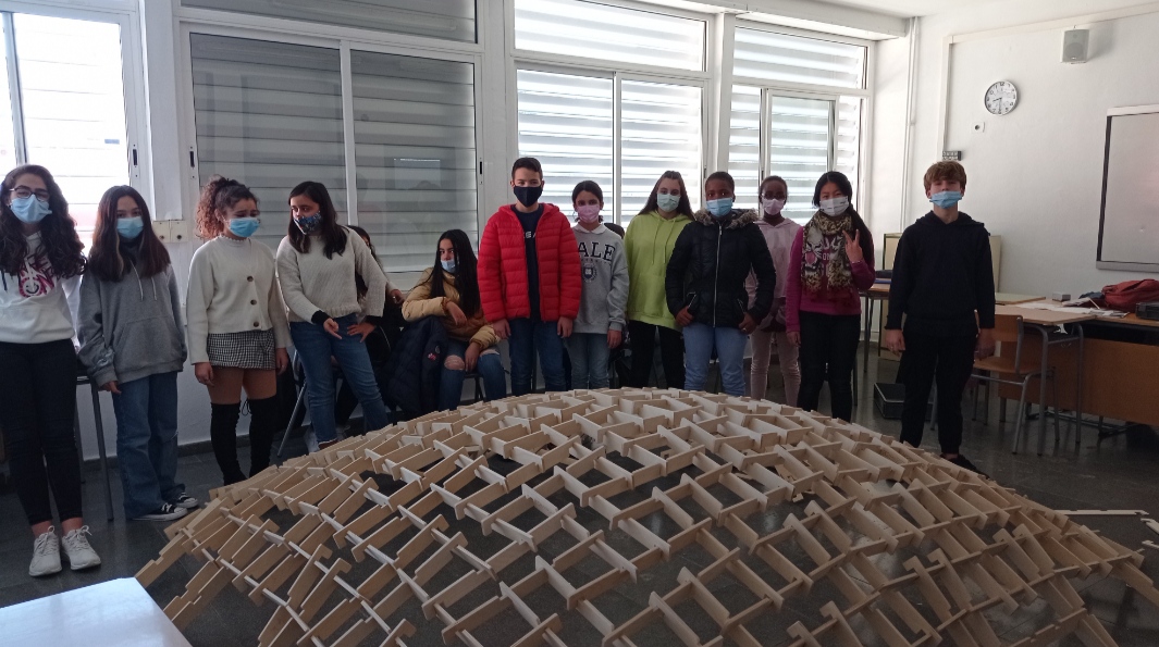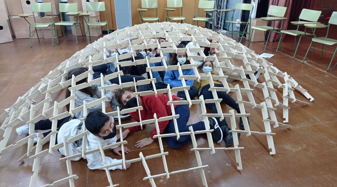 Durant l’activitat, després d’una breu presentació sobre la figura de Leonardo, els alumnes han construït l’estructura d’un pont i d’una gran cúpula entre tota la classe.