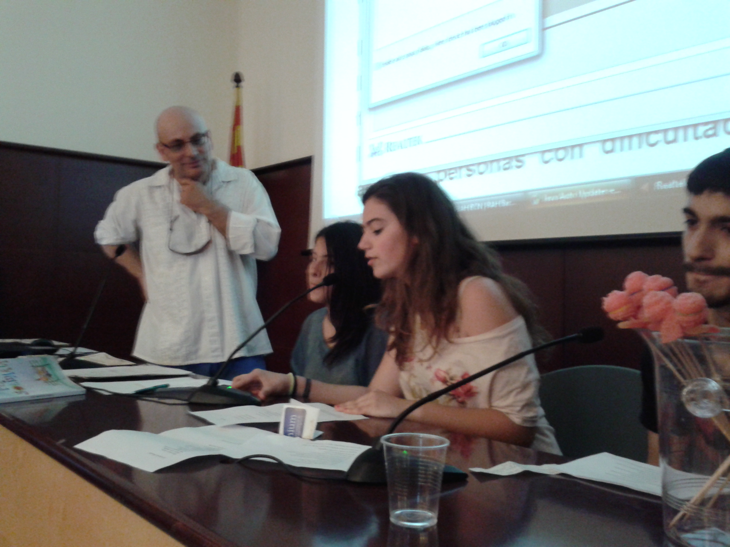 Enguany quatre alumnes de l’institut Antoni Cumella han estat premiats en la XIV Marató de Poesia en Acció que ha tingut lloc  aquest dissabte dia 15 de juny al Col·legi de Llicenciats i en l’ Ateneu de Barcelona. Els textos poètics de l’Adrián Díaz (Primer de batxillerat Nocturn), de la Laia Aymerich (3r d’ESO), de la Yasmin Koubiss (4rt d’ESO) i d’en Seraj Talibi (1r d’ESO) han estat premiats i publicats en la antologia Poesía solidaria. Poemes per a un món millor. Poemas para un mundo mejor que edita Ediciones Parnass. El llibre recull textos poètics d’estudiants de primària i de secundària d’arreu juntament amb els d’autors consagrats, tots ells en relació amb els valors humans més universals. Guillem Vallejo, president de Poesia en acció, és qui fa possible aquesta marató poètica i qui ens dirigeix aquestes paraules en la “Proètica” que encapçala l’antologia, tot fent un paral·lelisme amb la història de Sant Jordi i el Drac: El drac que ara està fent sotracs i estralls en la nostra societat és la crisi, amb unes urpes que tothom reconeix molt bé… No sé si tenim valents Sant Jordis per aquest maleït drac; el que sí estem veient és una resposta ciutadana que està organitzant-se per aturar tanta crueltat. Una de les plataformes  que més està fent per donar la mà i ajudar a aquells que estan patint més greument aquesta crisi és la Plataforma d’Afectats per la Hipoteca, a qui lliurarem els beneficis de l’edició d’aquest llibre. Així doncs, als poetes de l’Antoni Cumella podem anomenar-los valents Sant Jordis que, amb humiltat, miren de contribuir amb paraules alades a fer un món millor. A tots ells, gràcies i enhorabona. Escolteu-los en el següent enllaç: https://www.youtube.com/watch?v=Fms99DKdQQw&feature=youtu.be