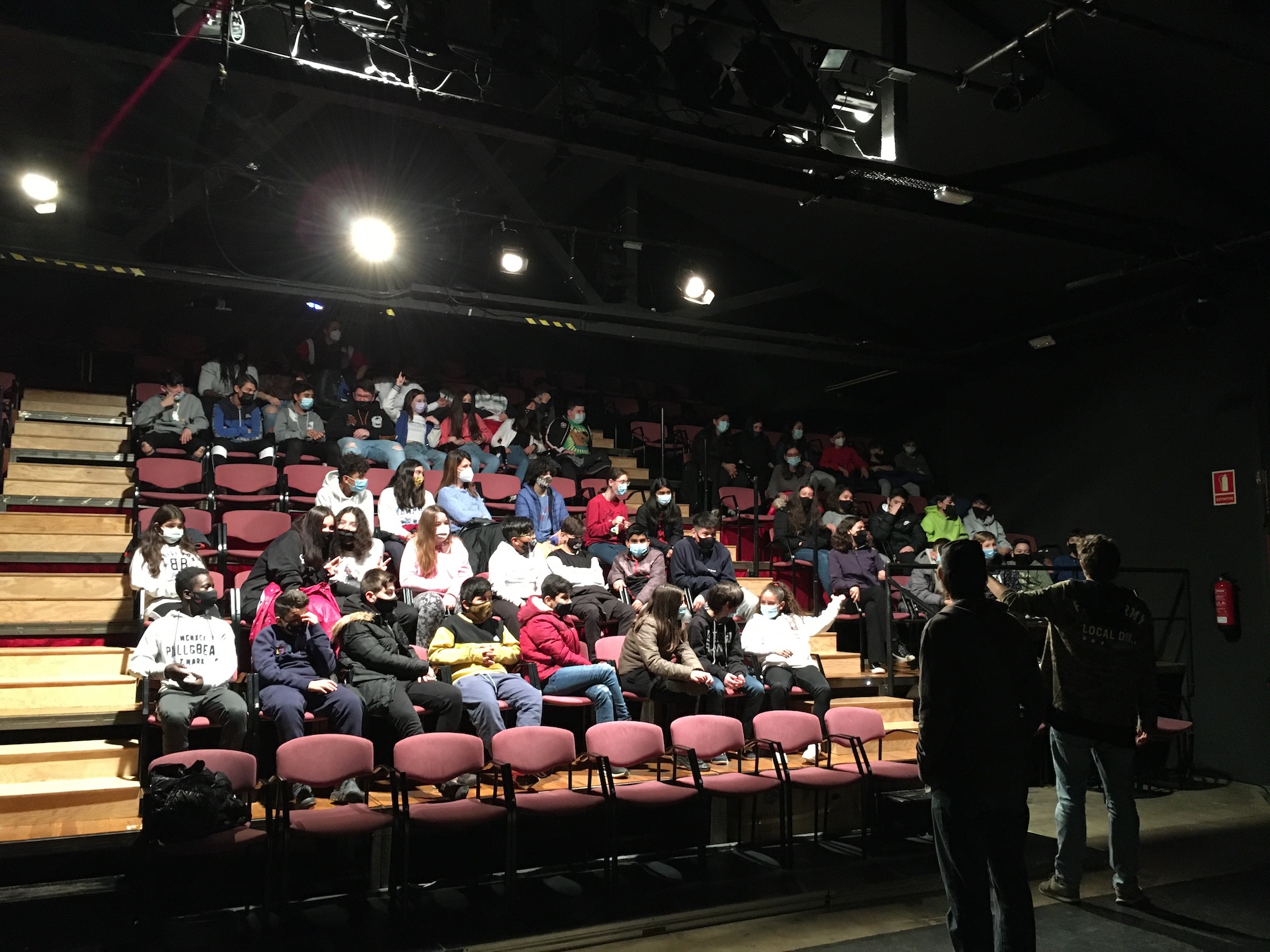 Tot el nivell de 1r d’ESO ha assistit a una activitat educativa al Teatre Llevant a càrrec de TeDebat de la Fundació AC de Granollers. La proposta educativa, titulada «Jugo jo» és una obra que es centra en els reptes i canvis a què s’enfronten els adolescents de 12 anys quan passen a fer l’ESO. En l’espectacle, a través dels seus protagonistes, s’han posat de relleu les emocions i sentiments que pot haver viscut l’alumnat de 1r d’ESO aquests primers mesos a l’institut. Començar a l’institut suposa un fet important a les seves vides: no només inicien una nova etapa formativa sinó que implica canvi de centre, nous amics, noves relacions… En acabar l’actuació, l’alumnat ha pogut debatre tots aquells aspectes del comportament dels dos actors i les dues actrius que els ha cridat l’atenció. Aquesta activitat es complementa amb l’acció tutorial.