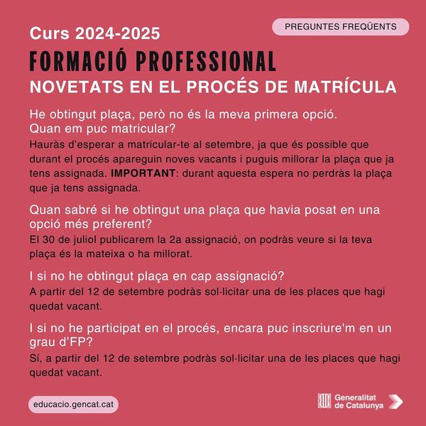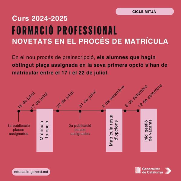 FORMACIÓ PROFESSIONAL NOVETATS EN EL PROCÉS DE MATRÍCULA