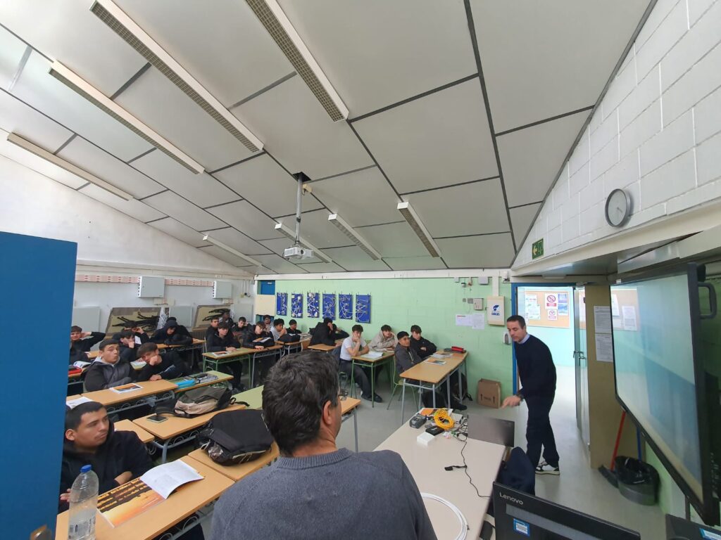 Durant la sessió, l’alumnat ha pogut aprofundir en el funcionament dels sistemes d’emissió i recepció de la televisió terrestre (TDT) i de la televisió per satèl·lit, dos àmbits clau dins del seu perfil professional. La xerrada ha combinat continguts teòrics amb exemples pràctics, fet que ha permès entendre millor com es duen a terme les instal·lacions reals en habitatges i edificis.