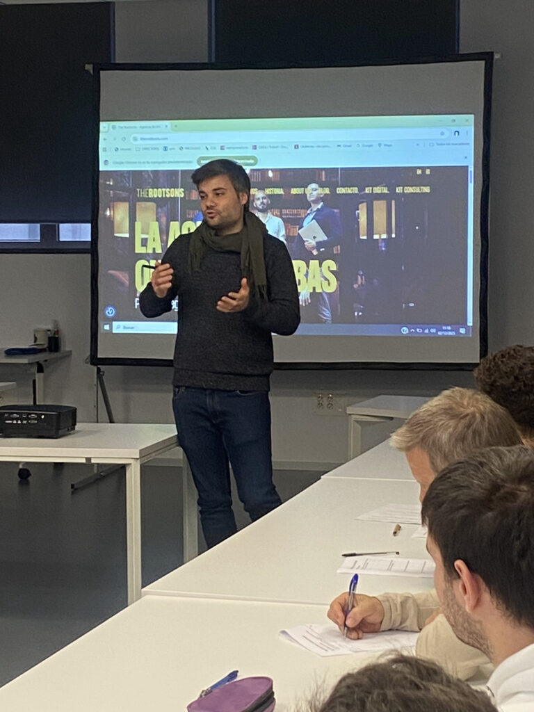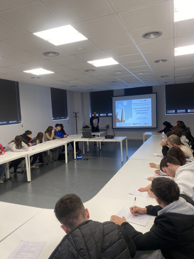 Durant la visita, l’alumnat va assistir a una xerrada d’Eduard Juanes, tècnic d’emprenedoria i empresa del CPE, i de Marc, soci fundador de The Rootsons, una agència de publicitat especialitzada en màrqueting digital amb una proposta de valor nascuda precisament en aquest entorn d’incubació.