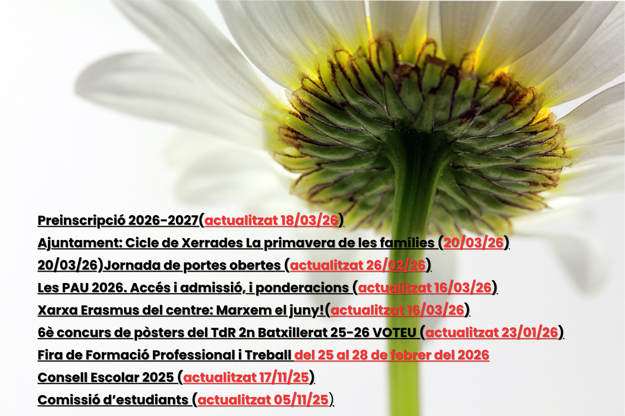 Notícia elaborada per l’alumnat: Lluc Cascos, Natàlia Salerno, Irene Molina, Sonia Ortega i Yaiza Vela. El passat 4 de març, […]