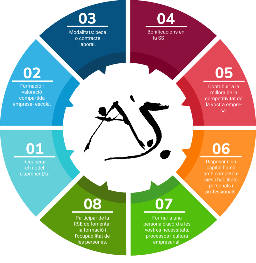 - Formació combinada d’aprenentatges teòrics al centre educatiu amb pràctiques formatives reals a l’empresa.
