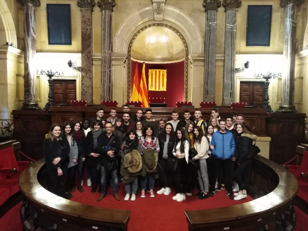 Raül Vidal Els alumnes de Gestió Administrativa (AG10) juntament amb els alumnes que cursen les matèries d’Història del món Contemporani i d’Economia de primer de batxillerat, van visitar el passat dimarts 8 de gener la institució legislativa de la Generalitat. Els professors responsables van ser Raül Vidal i Juan José Tomàs, acompanyats amb l’alumna amb