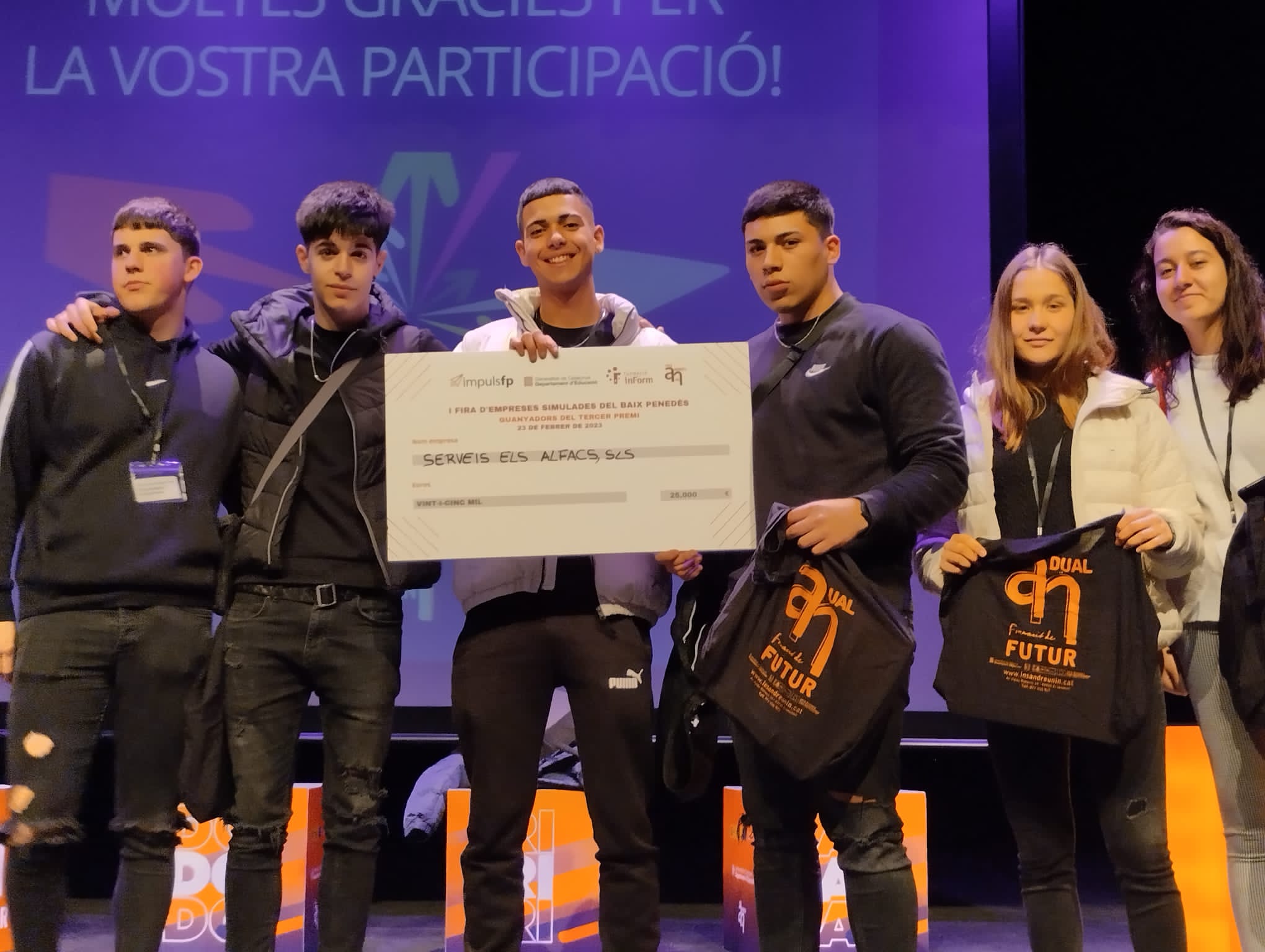 L’empresa simulada es diu SERVEIS ALFACS i té com a missió la comercialització d’equips per a la protecció individual (EPI’s) i senyalització, tot dins de l’àmbit de la prevenció de riscos laborals. L’alumnat va dissenyar el seu estand i va fer networking amb la resta d’empreses de les comarques del Tarragonès i del Baix Ebre. Més tard, l’equip SERVEIS ALFACS va presentar la seua idea de negoci utilitzant la tècnica de l’elevator pitch que havien treballat a l’aula. Els resultats van ser molt gratificants ja que van aconseguir un tercer premi d’entre les dotze empreses simulades presentades.