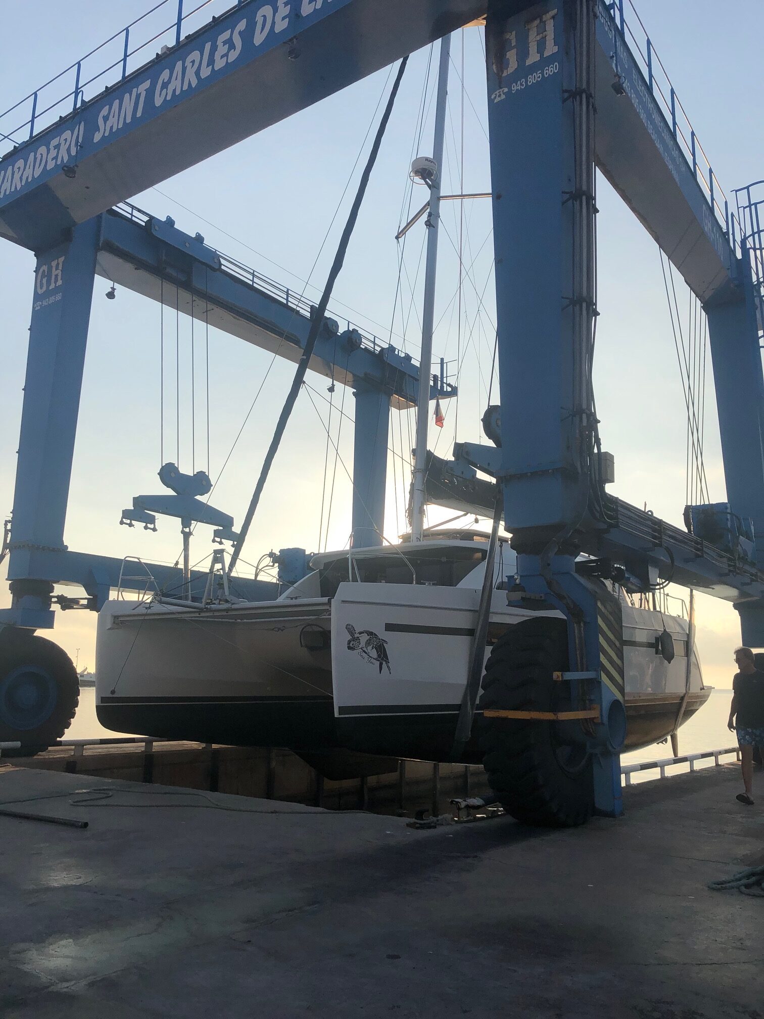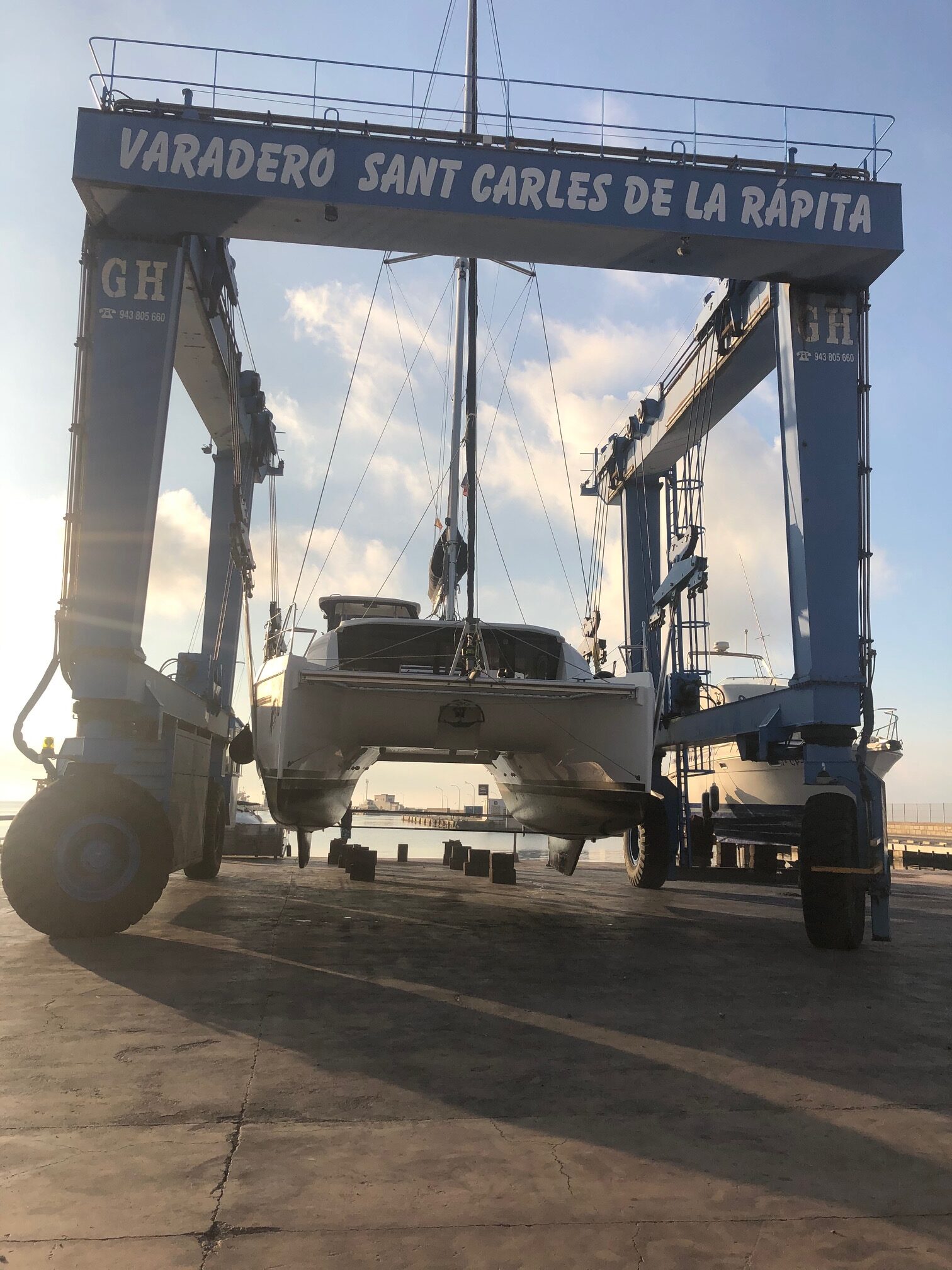 Durant la jornada van poder veure de primera mà l’operació de varada d’un catamarà d’inici a fi, és a dir, des de dintre de l’aigua a l’apuntalament al sec. La ubicació estratègica dels tallers del cicle formatiu a peu de mar ens dona l’oportunitat de poder aprendre la teoria mentre gaudim de la seua aplicació al mateix temps.
