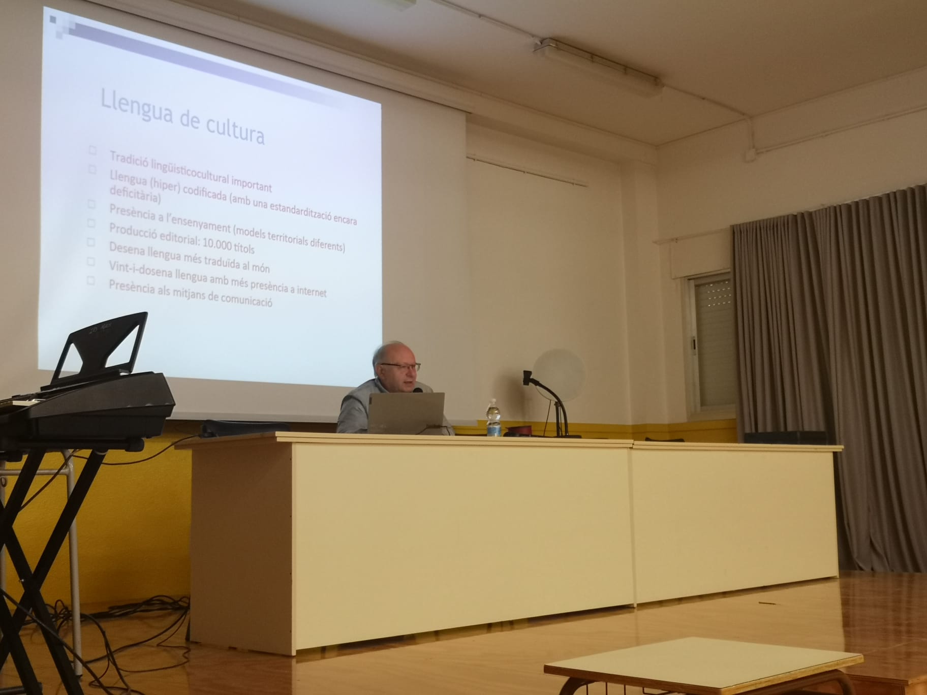 El passat 10 de desembre de 2024, els estudiants de 1r de batxillerat de l’institut Els Alfacs de la Ràpita vam participar en una conferència titulada El català, una llengua amb futur, impartida pel doctor Miquel Àngel Pradilla, professor de Fonètica i Fonologia i de Sociolingüística al Departament de Filologia Catalana de la Universitat Rovira i Virgili (URV). Aquesta conferència va formar part del Cicle de Conferències Temàtiques que organitza la URV, amb la voluntat d’apropar els coneixements universitaris a la societat jove i fomentar la reflexió sobre qüestions clau, com ara la situació i futur de la llengua catalana.