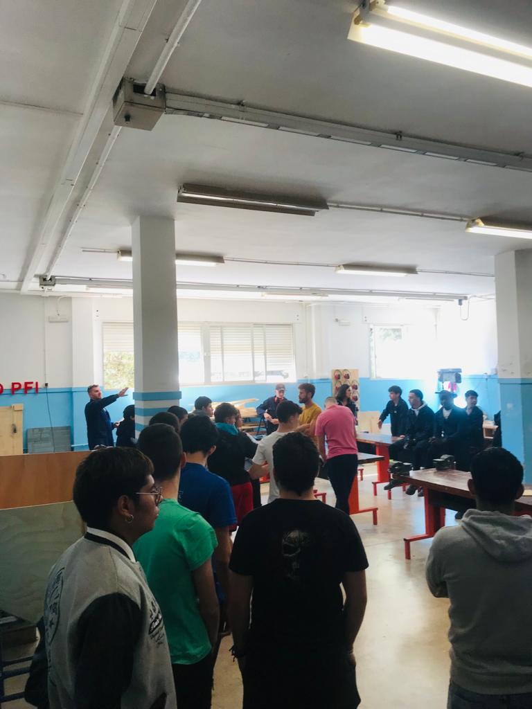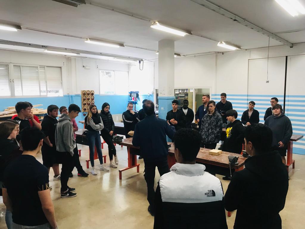 Es van començar els tallers a les instal·lacions de l’institut on s’imparteix part del cicle, d’aquesta manera l’alumnat va poder gaudir d’un taller de fusta i també d’electricitat i d’electrònica. Més tard, van desplaçar-se fins a les instal·lacions del Port on hi ha la resta de tallers del cicle formatiu, allí van visitar els tallers de veleria, motors, soldadura i pintura i fibra. L’alumnat va poder soldar i també veure com es treballa la fibra i la pintura.