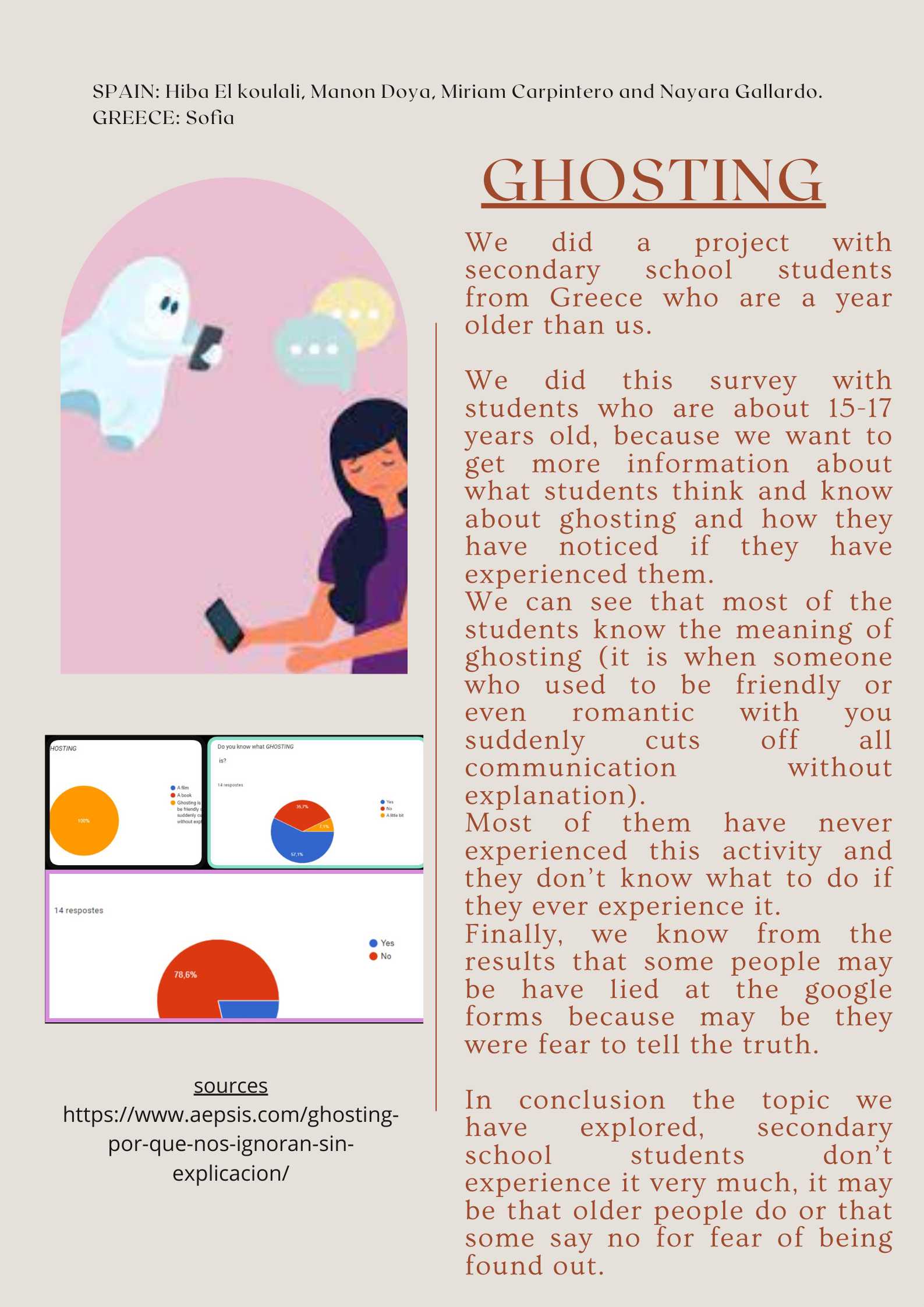 Tot i have experimentat problemes tecnològics que ens han impedit desenvolupar el projecte en la seva totalitat, ha estat una experiència enriquidora i hem après sobre conceptes com ara FOMO, GHOSTING o DIGITAL DETOX.