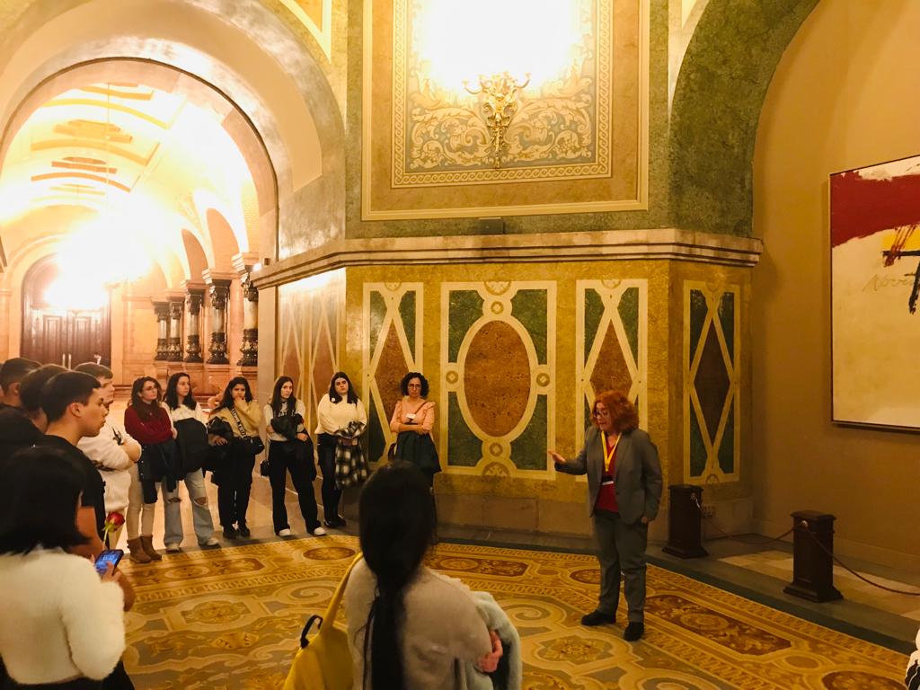 Se’ls va explicar la història de l’edifici que acull la institució, les funcions que desenvolupa i la seva composició. També van tenir l’ocasió d’asseure’s a l’hemicicle on es debaten i voten les lleis i finalment passejar pel “Saló dels passos perduts”.