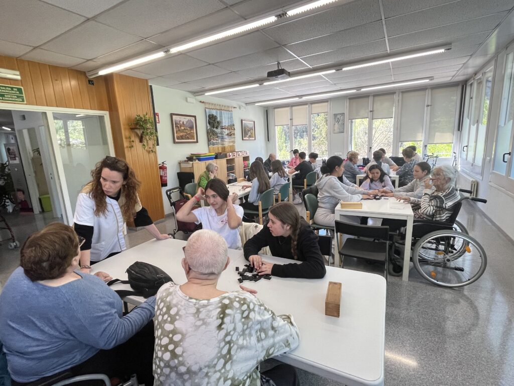 Aquest matí els alumnes de 1r i 2n d’ESO que cursen l’optativa de l’àmbit social han tornat a visitar la Residència Colisée de Bagà per continuar el projecte intergeneracional del centre. Durant la sessió, els joves han compartit converses, rialles i vivències amb els residents, creant un espai de trobada on s’intercanvien històries, records i