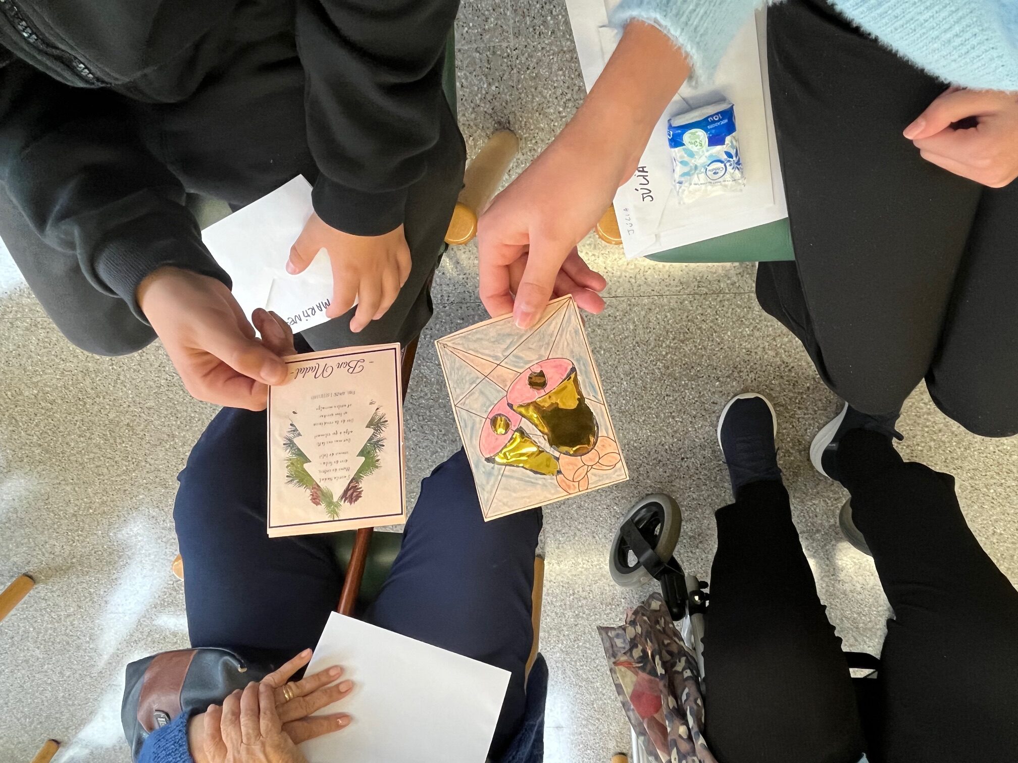 En aquesta ocasió, coincidint amb les festes nadalenques, els joves i els residents han compartit una estona molt especial intercanviant felicitacions de Nadal fetes a mà, plenes de missatges d’afecte, bons desitjos i il·lustracions nadalenques. Aquesta activitat ha permès enfortir els vincles entre generacions, fomentant valors com l’empatia, el respecte i la solidaritat.