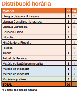 MARC HORARI DE MATÈRIES DEL BAXTILLERAT