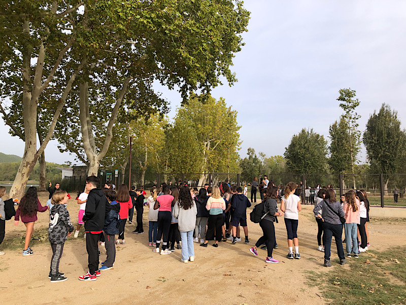 23/10/23 – 10:20. Esmorzats, ens agrupem per fer les activitats del dia entorn de l’estany de Banyoles. Fa sol, i fins i tot calor.