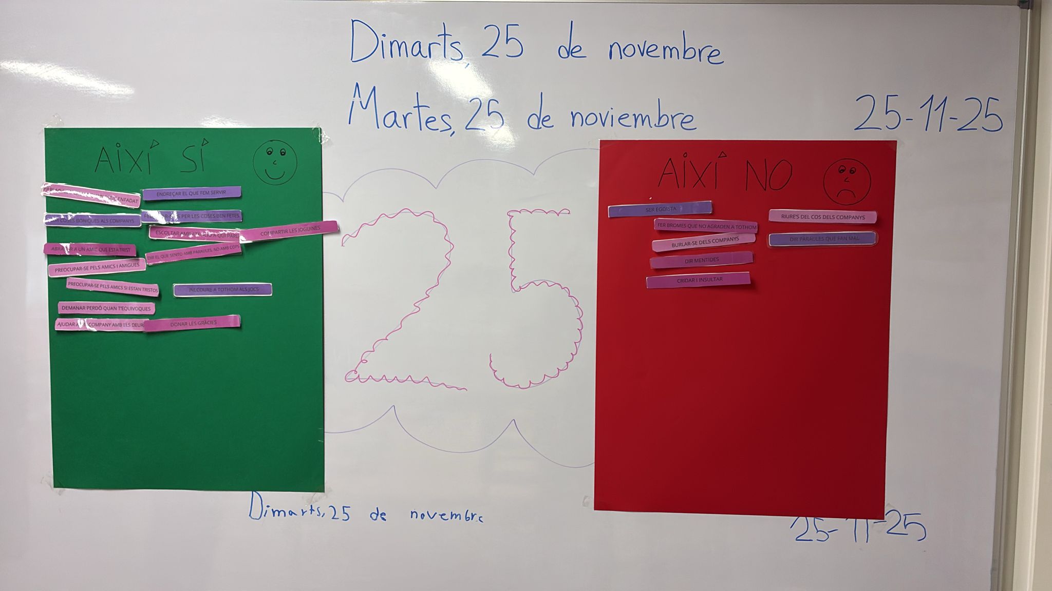 Per posar fi a aquesta situació i, amb motiu del 25N, des del centre hem dut a terme diverses activitats per conscienciar sobre el respecte i la no-violència a les diferents etapes educatives (infantil, primària i secundària).