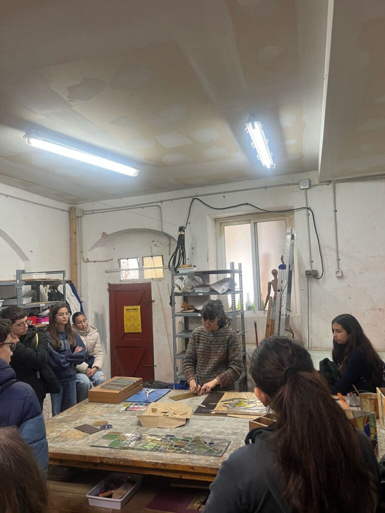 Més tard hem visitat la casa d’estiueig de Domènech i el seu despatx personal. Després de dinar, moment en què finalment hem pogut veure una mica de sol després de tanta pluja, hem anat a un taller d’una artesana vitrallera, la Laura Munrabà. Ens ha explicat el procés de fabricació dels vitralls i els materials que s’hi utilitzen.