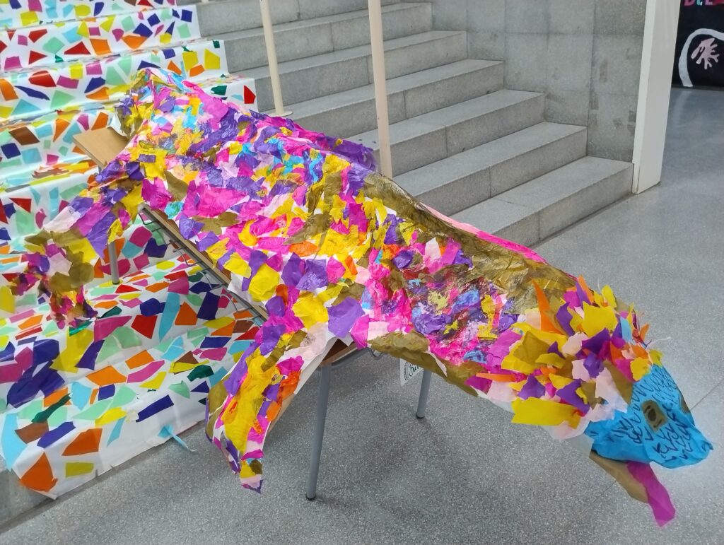 Today was a class day at school. We finally got some rest and got back to the school routine. But yes, with our Portuguese colleagues on our side. We have done the optional subjects on Fridays, and they have been able to live like a school day in Catalonia. It’s different in Portugal! And to finish the week, we have done a workshop to recreate our own Modernist Dragon and that will stay forever in our center.