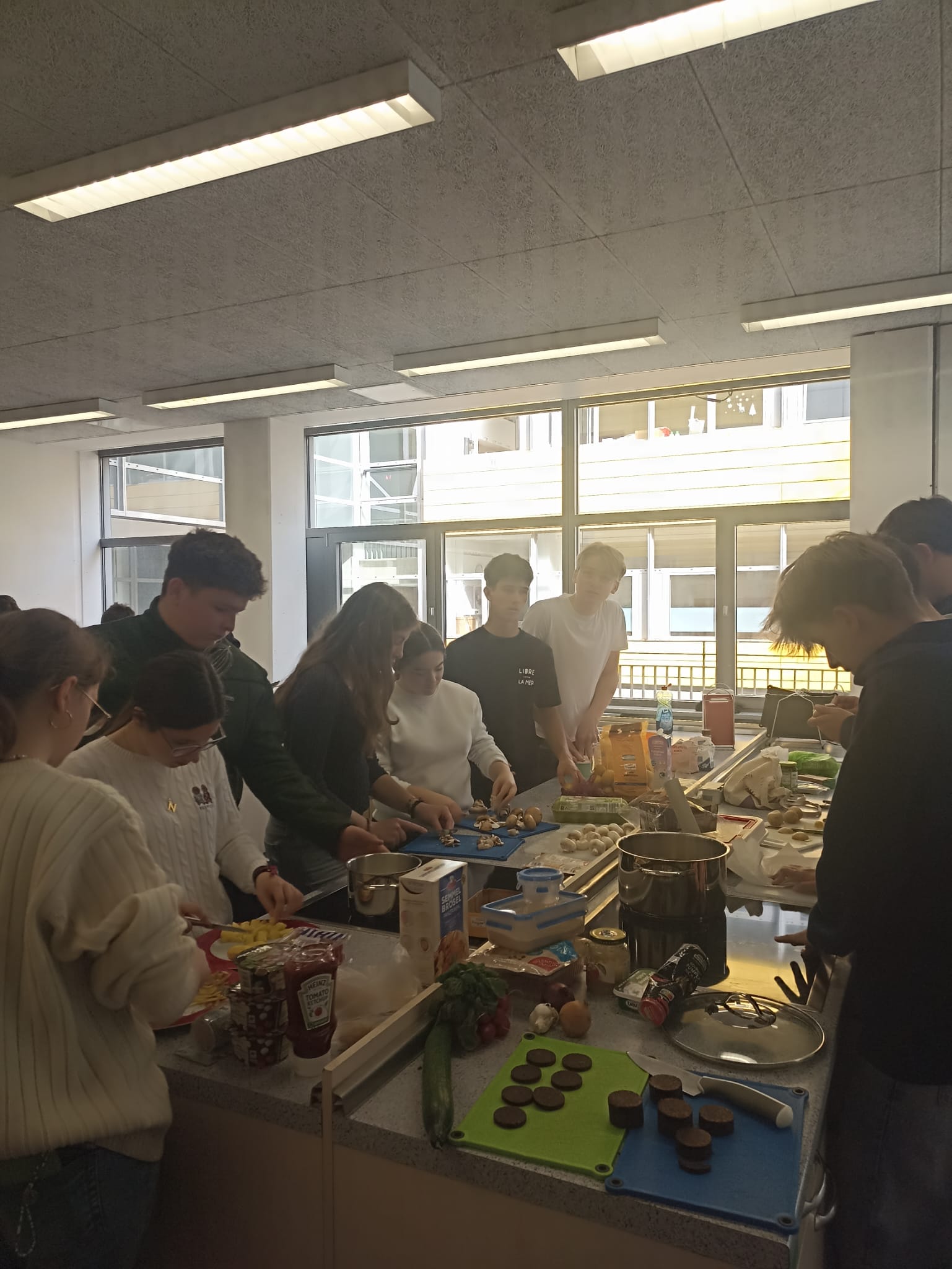 Després d’aquesta reflexió, s’han arromangat les mànigues per participar en un intercanvi culinari molt especial. Per parelles, han preparat una activitat de “tapas–Brotzeit”, combinant la tradició de les tapes catalanes i espanyoles amb la cultura gastronòmica alemanya. Ha estat una manera deliciosa de compartir cultures, treballar en equip i acomiadar-nos de l’estada amb bon gust.