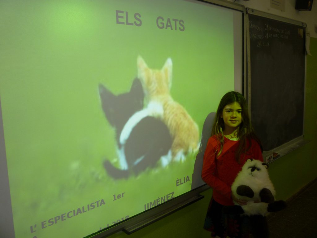 Avui l’Èlia ens ha parlat de les seves mascotes: els gats. Ens ha explicat que són animals mamífers, el que mengen, com cuiden a les cries, quant dura el seu embaràs, com es netegen, quantes hores dormen… Ens ho ha explicat molt bé! Gràcies Èlia!!!