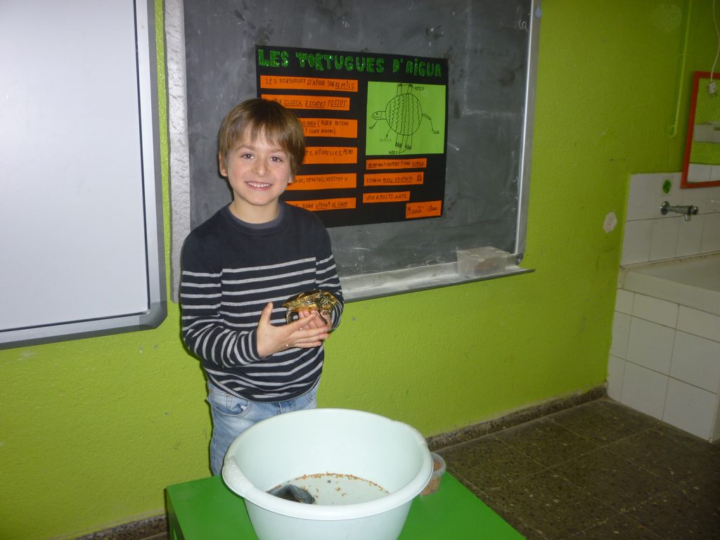 Avui hem tingut uns convidats molt especials a la classe, dues tortugues d’aigua! El Martí, que és tot un expert en aquests animals, ha portat a la seva mascota i la del seu germà Pau i les hem pogudes tocar. Ens ha explicat com són, què mengen i moltes altres curiositats. Moltes gràcies Martí, hem après molt!
