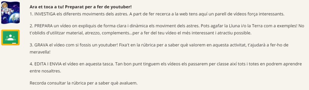 Així que aquests dies estan ben enfeinats fent recerca, preparant guions, buscant imatges i vídeos i, fins i tot, construint maquetes per a fer-se youtubers científics i editar un vídeo que han de lliurar el 19 d’octubre. Els voleu acompanyar?