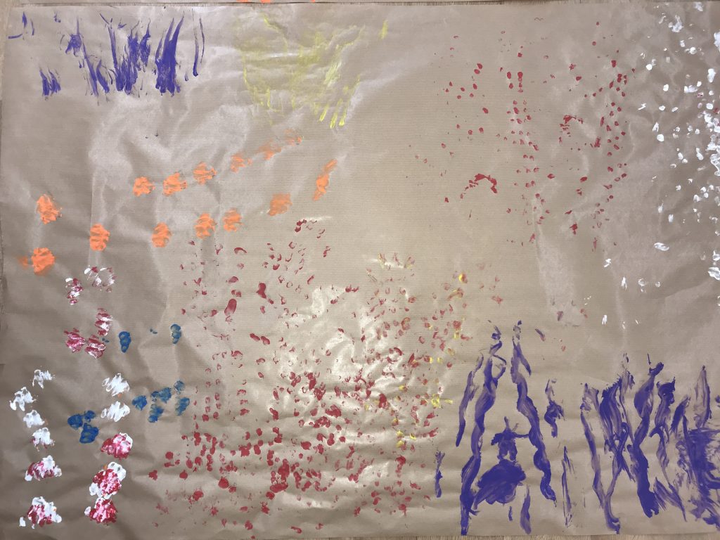 AQUESTS DIES HEM FET UNA ACTIVITAT DE MOVIMENT, MÚSICA I ART. ELS NENS/ES S’HAN MOGUT AL RITME DE LA MÚSICA IMITANT ELS MOVIMENTS DELS ANIMALS NOCTURNS, TOT DEIXANT LA PETJADA EN UN MURAL.