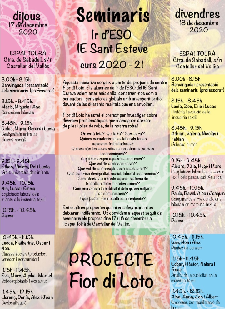 Aquesta iniciativa sorgeix a partir del projecte de centre Fior di Loto. Als alumnes de 1r de l’ESO del IE Sant Esteve volem anar més enllà, construir-nos com a pensadors i pensadores globals amb un esperit crític davant de les diferents realitats que ens envolten.