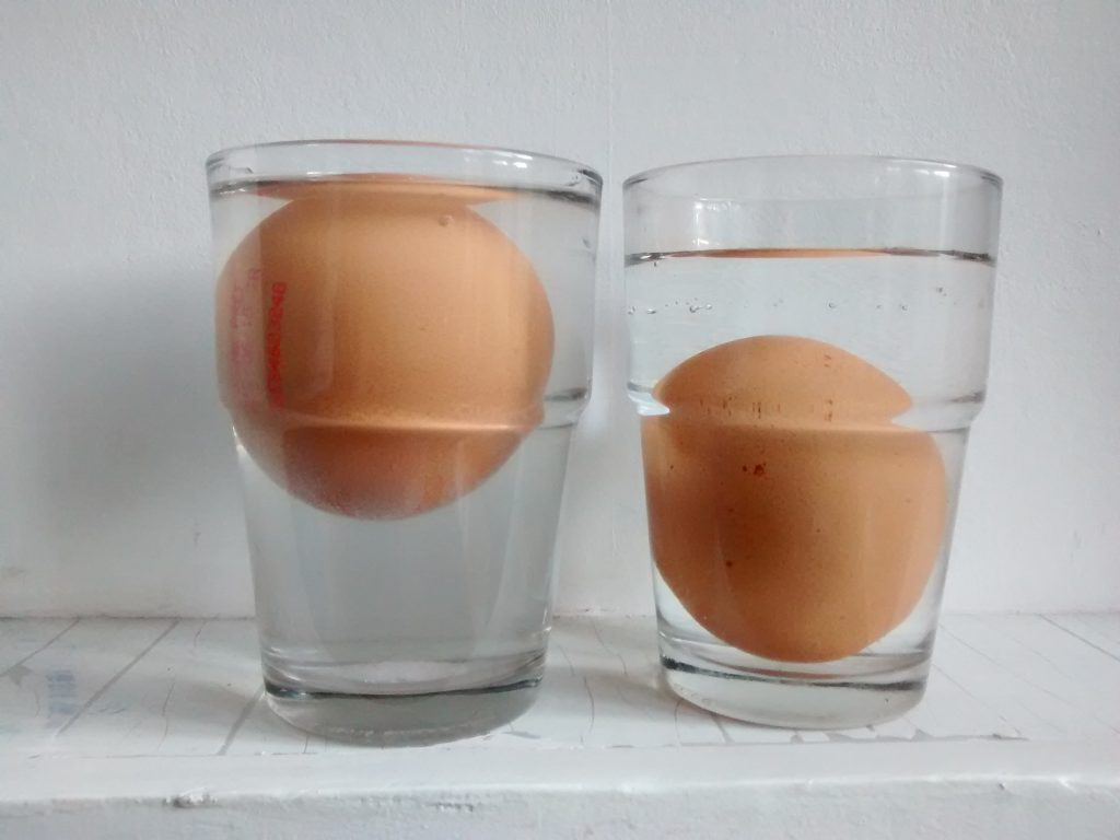 De la mateixa manera que nosaltres flotem quan estem al mar, l’ou pot flotar quan el posem al got de l’aigua amb sal! A més quantitat de sal, més flotabilitat.