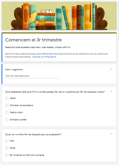 Hola nenes i nens, al correu de l’escola rebreu un formulari que heu d’omplir i enviar-lo aquesta setmana. Una abraçada,