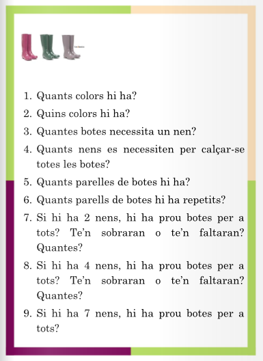 ESTARIA BÉ QUE ELS VOSTRES FILLS/ES TINGUESSIN A MÀ PAPER I LLAPIS JA QUE VA BÉ DIBUIXAR D’ALGUNA MANERA EL QUE ESTAN PENSANT. TAMBÉ PODEU TENIR PECES O ALGUN MATERIAL PER FER COMPTATGE I CÀLCUL SEGONS EL PROBLEMA.