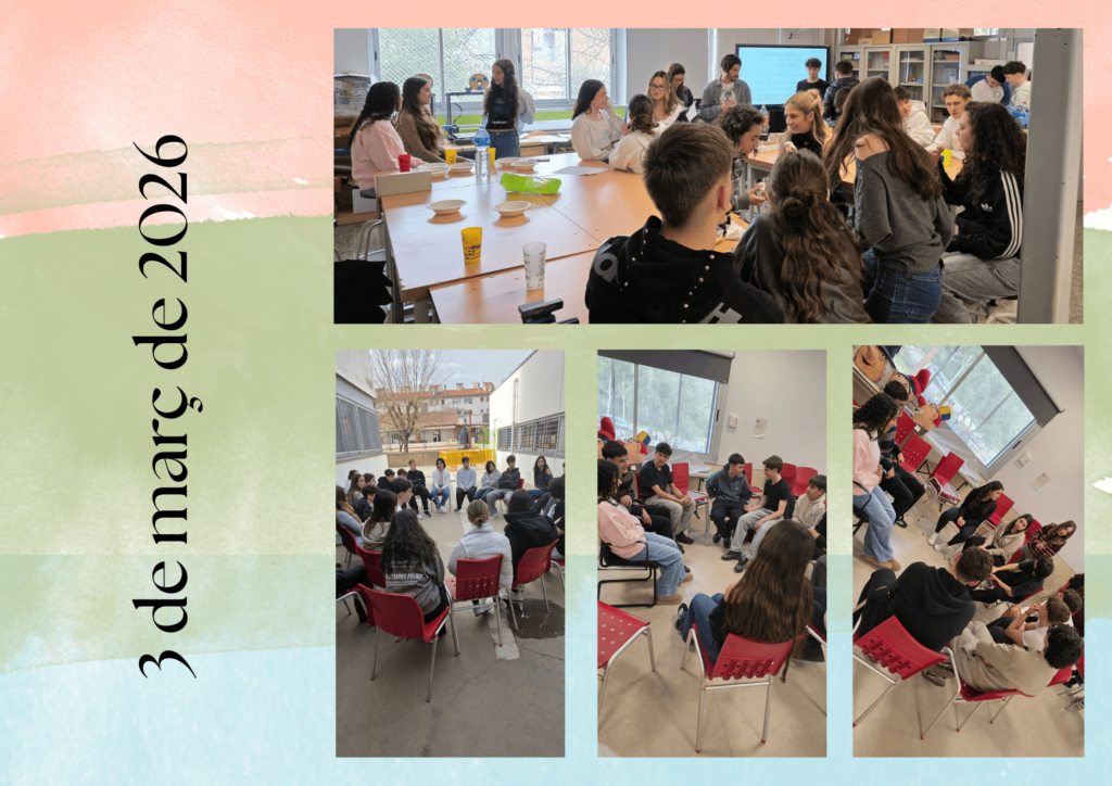 15:15h | Sessió amb l’alumnat de 4t d’ESO: Una xerrada informal i propera. No cal que porteu res preparat, només les ganes d’explicar la vostra realitat i donar aquells consells que a vosaltres us hauria agradat rebre.