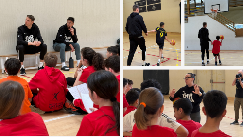 El dimarts 8 d’abril l’alumnat de sisè de primària va poder gaudir d’una tarda molt enriquidora amb dos jugadors del Bàsquet Girona, equip que actualment juga a Lliga ACB.
